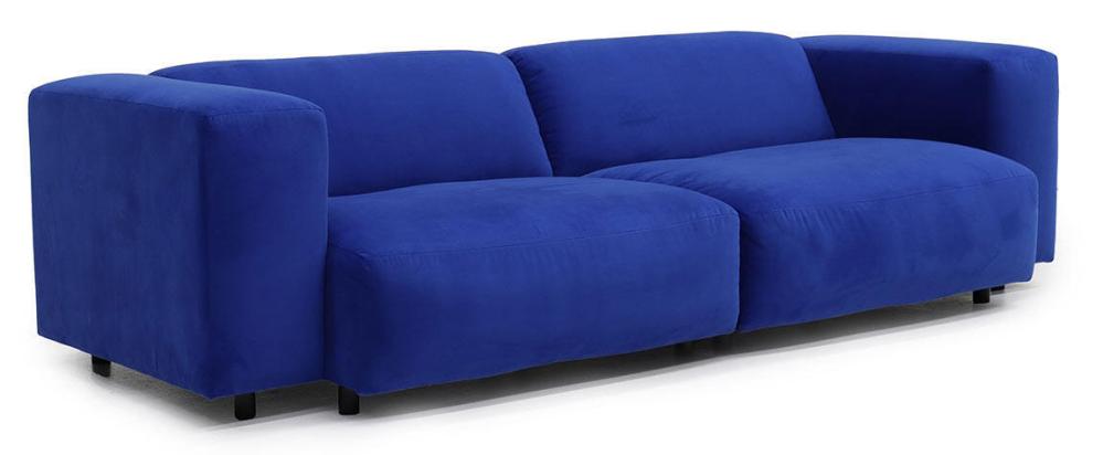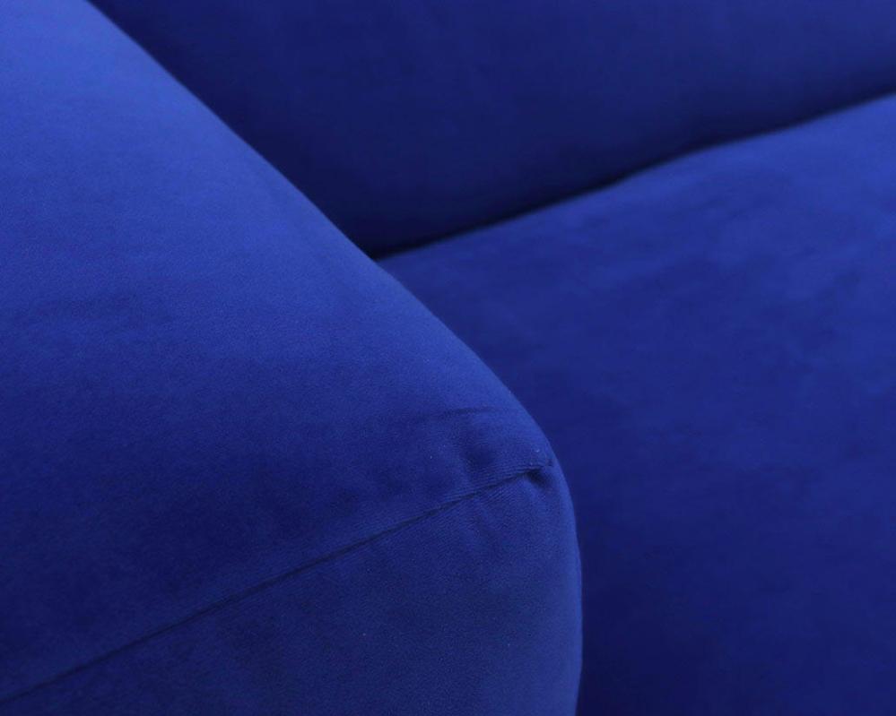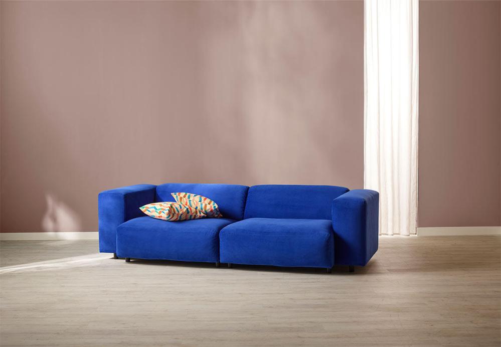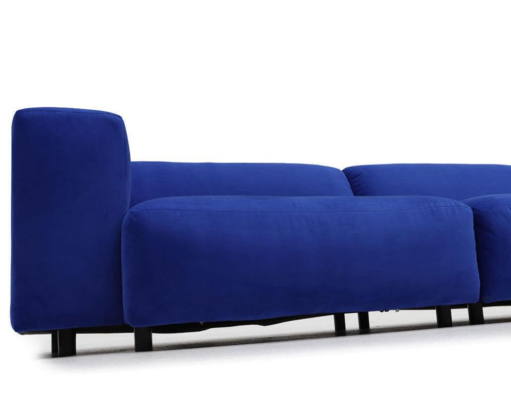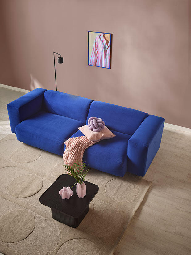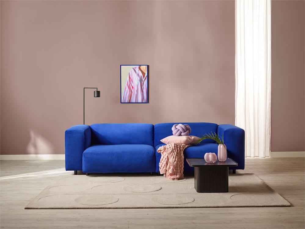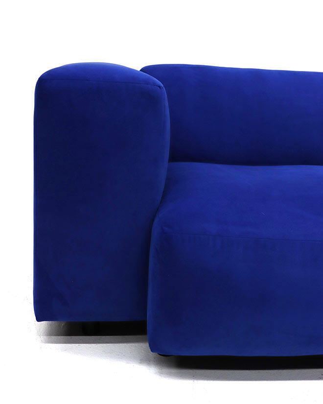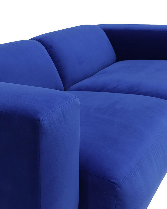 Utforska den djärva och unika modulsoffan Flores, här i en färdig kombination som 3-sitssoffa XL klädd i det slående koboltblåa tyget Eight. Denna soffa erbjuder inte bara en visuell wow-faktor med sin intensiva kornblå färg och skarpa, boxiga former, utan den kan också anpassas efter din stil med ett brett utbud av andra tyger och färger.