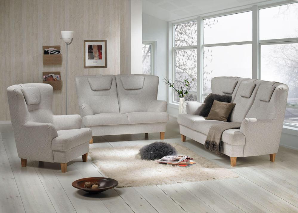 Greta är soffan du sitter i länge. Med sin höga rygg och nackstöd till varje sittplats, blir det en riktig vinnare! Vill du ha soffan för dig själv rekommenderar vi Hans fåtölj, som passar perfekt till. Du hittar fåtöljen och en matchande fotpall en bit ner på sidan under Liknande produkter.