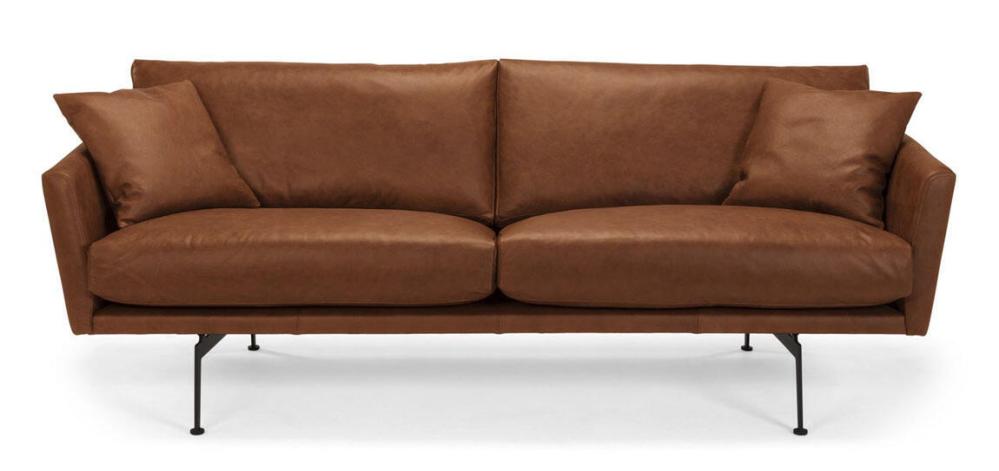 Idun är en skön 3,5-, 3- eller 2,5-sitssoffa med sina moderna linjer passar den i många vardagsrum. Vi visar den här i lädret Vintage men finns i flera läder/tyger och färger i vår fysiska butik. Idun är svensktillverkad av Bröderna Anderssons i Småland.