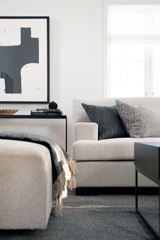 Modulsoffan kombineras fritt genom flertalet friställda moduler som antingen fästs samman med krokodilbeslag eller placeras solitärt då de är helt klädda runt om.