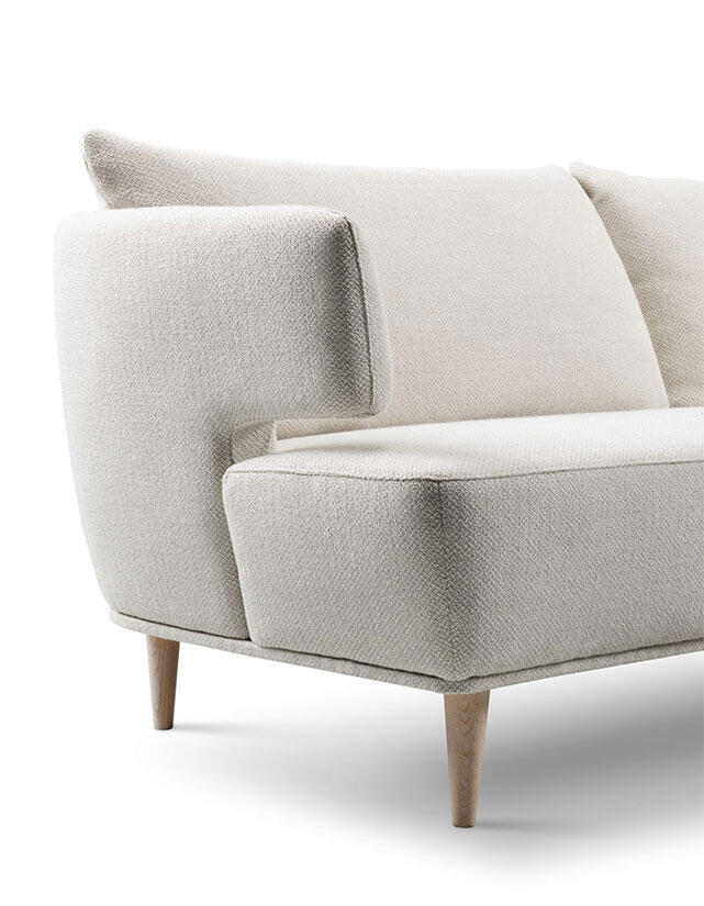 Lilly från norska varumärket Brunstad är en soffa med inspiration från 50-talet. Soffan har skön sittkomfort med lösa och mjuka ryggkuddar i en blandning av fiber och latex.