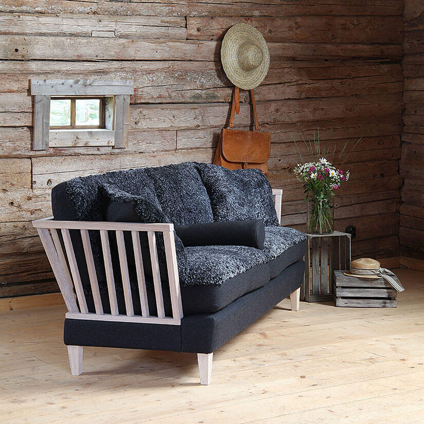 Vid val av fårskinn levereras alltid ena sidan av kuddarna i fårskinn medan andra sidan kommer i matchande Facet tyg.