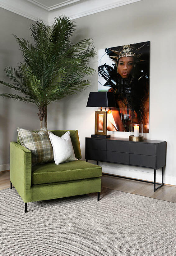 Den här modulen är en 1-sits 90 cm. Kan användas fritt som en stilren fåtölj eller kombineras med fler delar för att bygga en soffa.