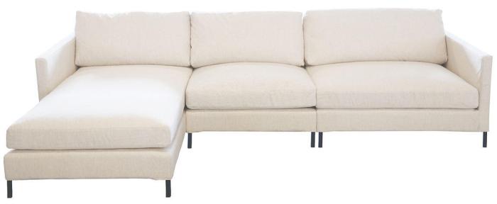 I denna modulsoffa som bildat en divansoffa ingår följande delar: Divan med armstöd + 1-sits + Långt avslut med armstöd.