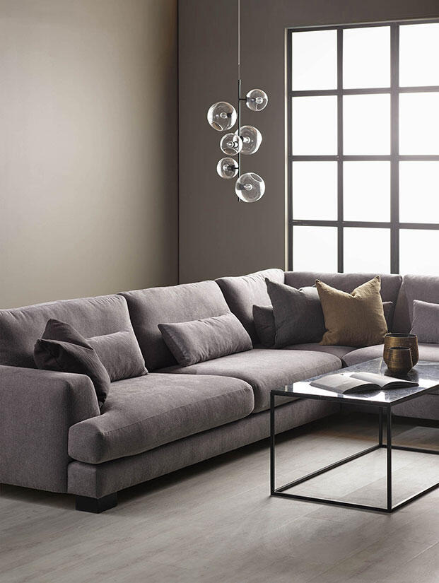 Vox är soffan för hela familjen, kompisgänget eller bara till dig själv! En stor och härlig tresits med öppet avslut som kan beställas till höger eller vänster. Det här utförandet av soffan är klätt i ett skönt och slitstarkt tyg i grey färg.