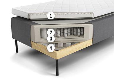 Fjädersystemet ger en stor ytmjukhet i hela madrassen, eftersom de fastare zonerna först ger stöd när kroppen sjunker djupare ner i madrassen.