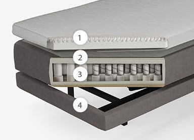 Fjädersystemet ger en stor ytmjukhet i hela madrassen, eftersom de fastare zonerna först ger stöd när kroppen sjunker djupare ner i madrassen.