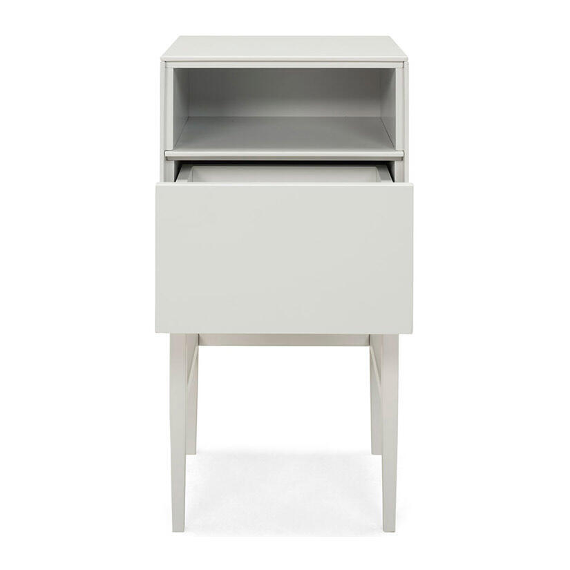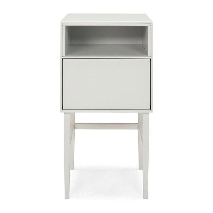 Sängbordet levereras färdigmonterat. Det snygga nattduksbordet har en rymlig låda och en öppen hylla för smidig förvaring.