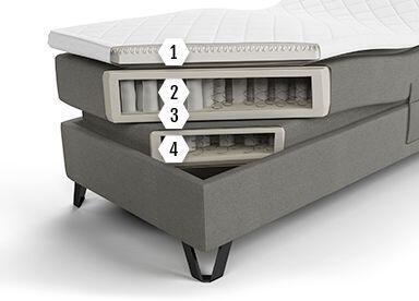 Jensen Aqtive II är dubbelfjädrande med fjädersystem i både den vändbara madrassen och i botten. Konstruktionen gör att sängen blir mycket stabil. Med fjärrkontrollen styr du steglöst madrassens huvud- och fotända som drivs av två kraftiga, men nästan ljudlösa elektriska motorer.