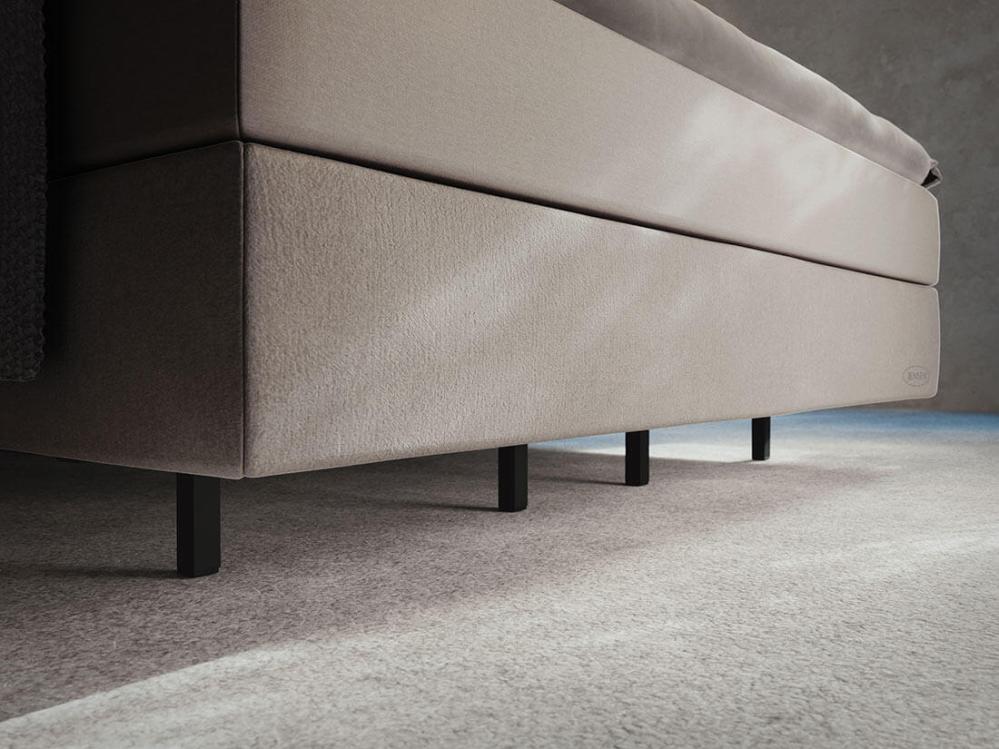 Flying Optics sängben ger intrycket av att sängen svävar ovanför golvet, ett tillbehör som kompletterar designen. Benen är 14 cm höga och tillverkade av svartlackad metall.
