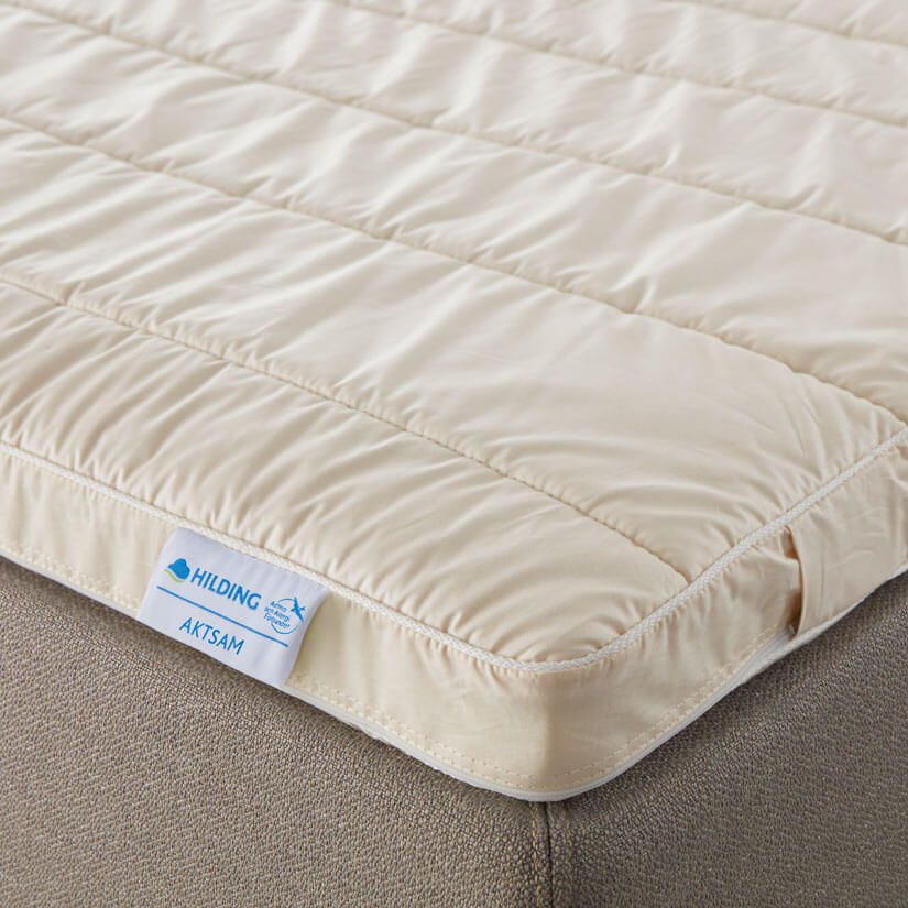 Hilding Aktsam bäddmadrass är utvecklad tillsammans med Astma- och Allergiförbundet. Förutom att den uppfyller alla krav om att vara fri från allergiframkallande ämnen har den också ett tätvävt bomullstyg som gör att husdammskvalster* hindras från att ta sig in i madrassen. Cirka 7 cm. Avtagbart och tvättbart fodral, 60 °C, som både är familjevänligt och allergivänligt.