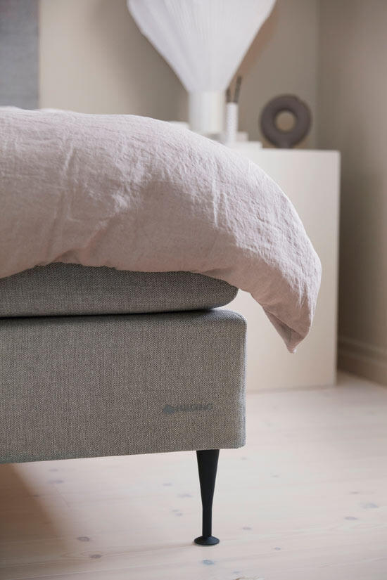 18 cm ben eller högre rekommenderas för att enklare hålla ditt sovrum rent, fräscht och tryggt. Här på produktsidan kan sängen enkelt kompletteras med de mest populära benen. Se alla ben från Hilding här.