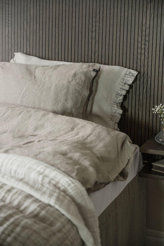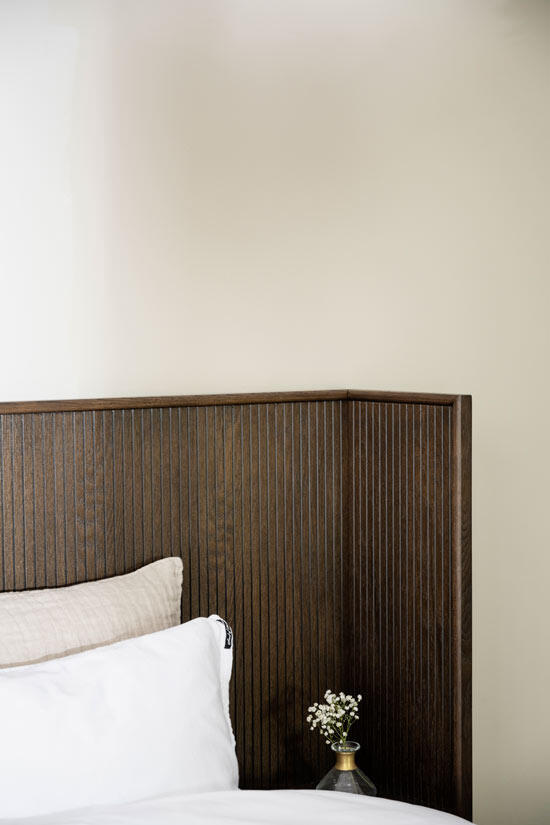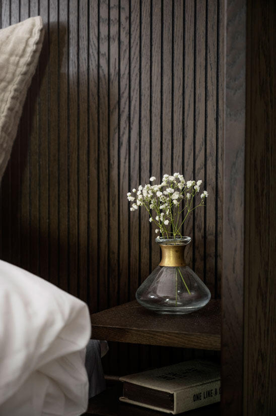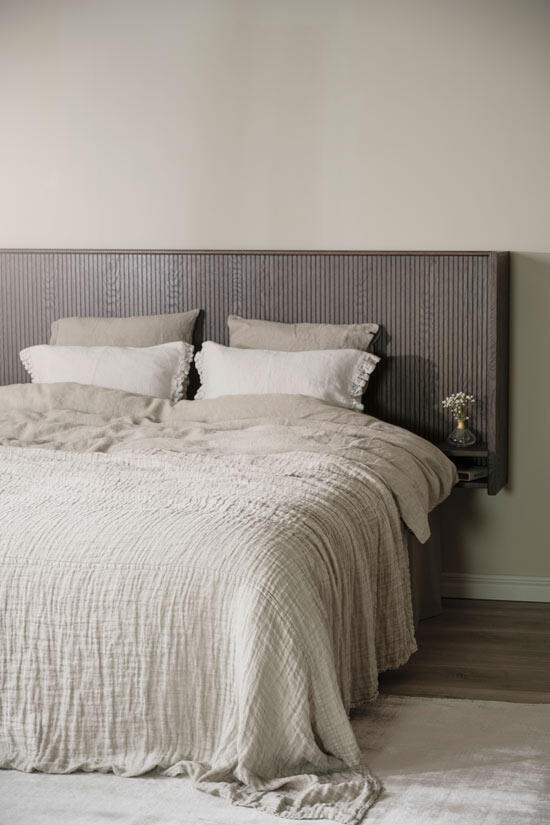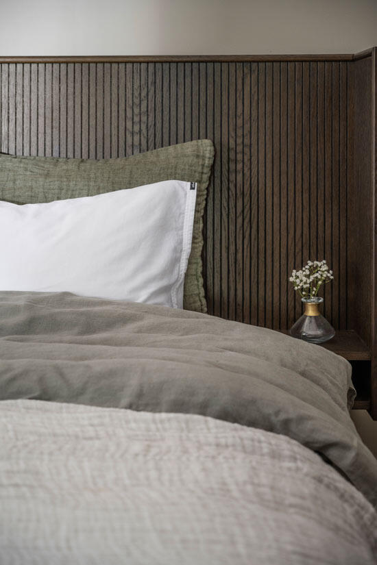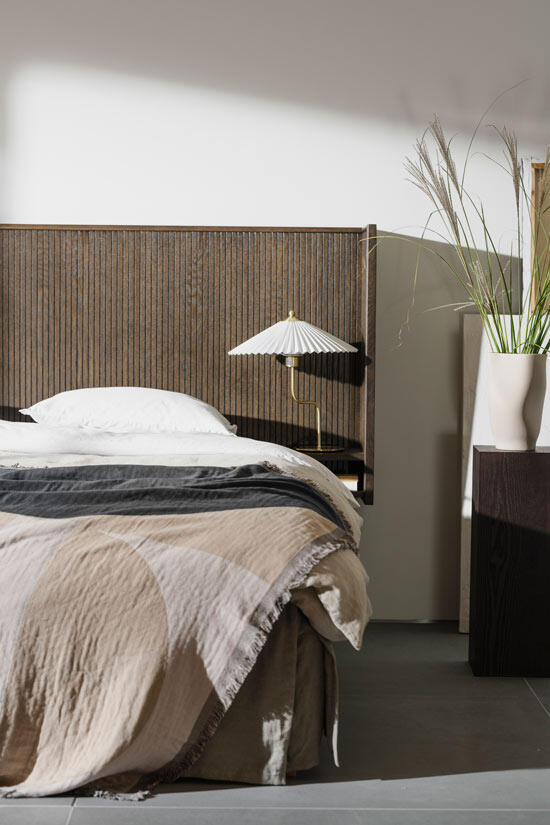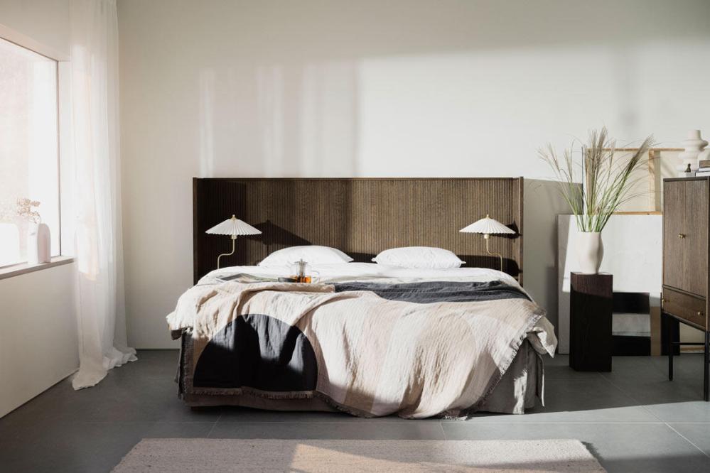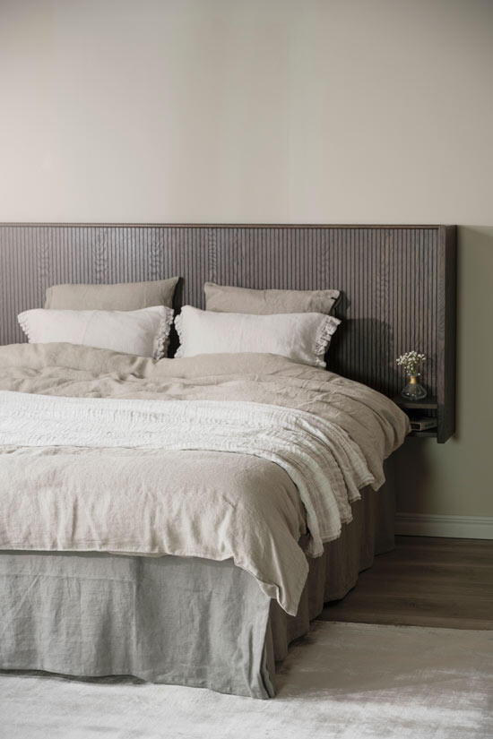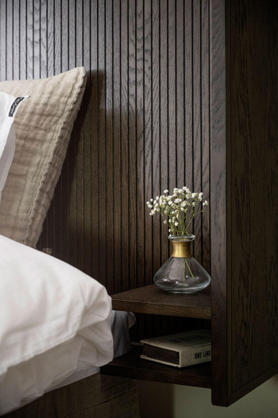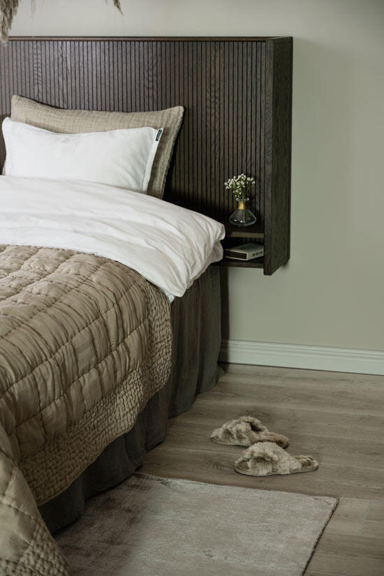 Redmond sänggavel är både elegant och exklusiv vilket ger dig en härlig hotellkänsla i ditt sovrum. Kombinera sänggaveln med pendellampor ovanför de integrerade sängborden och inredningsdetaljer i mässing för ett extra lyxigt intryck.