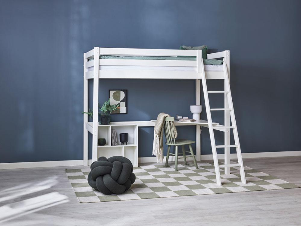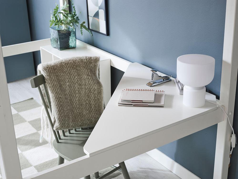Saga skrivskiva är det perfekta tillbehöret till loftsängen med samma namn. Med en praktisk design som enkelt fästs i ena hörnet under sängen, erbjuder skrivskivan en dedikerad yta för läxläsning, studier och pyssel.