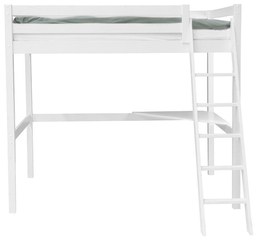 Med flexibel montering kan stegen placeras på både vänster eller höger sida, vilket gör det enkelt att anpassa sängen efter rummets layout. Saga loftsäng levereras med ribbotten inkluderad, men madrass säljs separat. För dig som vill maximera funktionaliteten kan du lägga till en praktisk skrivskiva som enkelt fästs på sängens hörn – perfekt för studier, läxläsning eller pyssel. Dessutom finns ett smidigt sängbord att hänga på sängramen, där du kan ha din bok eller väckarklocka nära till hands.