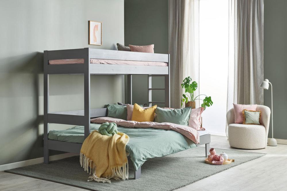 Siri familjesäng 90/170x200 cm erbjuder en smart och flexibel lösning för dig som behöver extra sovplats men vill spara utrymme. Den övre bädden mäter 90x200 cm, medan den underbädden imponerar med en genial utdragsfunktion som ger ytterligare 80x200 cm sovyta. Detta skapar en totalt generös bredd på hela 170 cm när den är utdragen, vilket ger gott om plats för två personer. När underbädden inte är utdragen är den 90x200 cm.