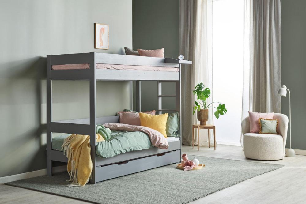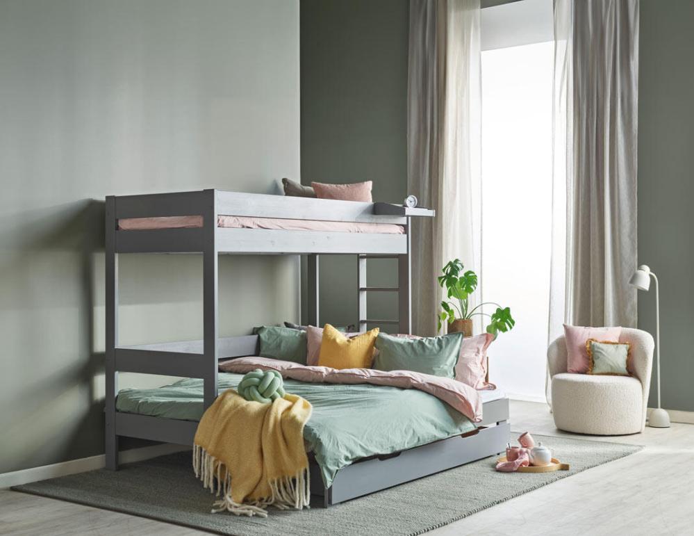 Till Siri våningssäng och familjesängar finns smarta förvaringslådor på hjul som hjälper dig att hålla ordning och reda.
