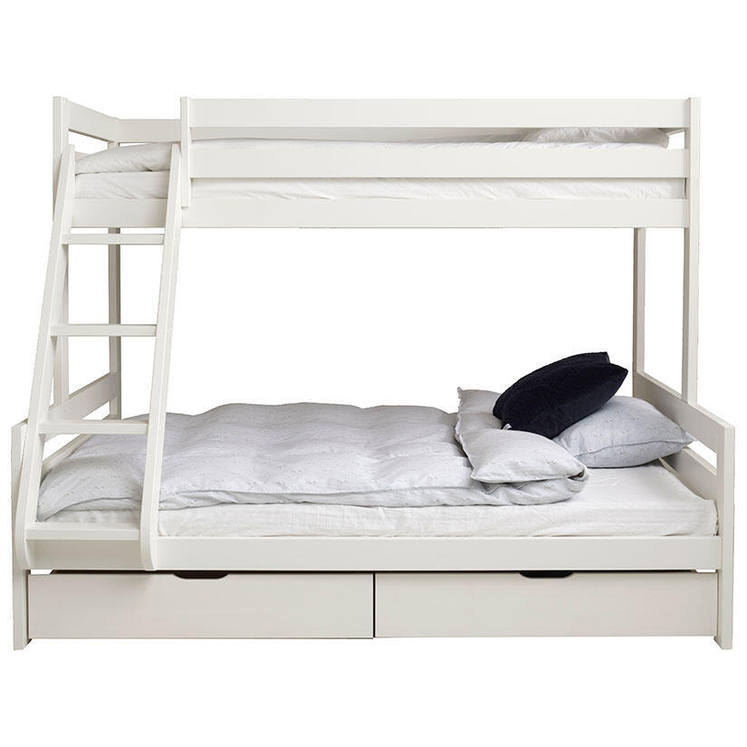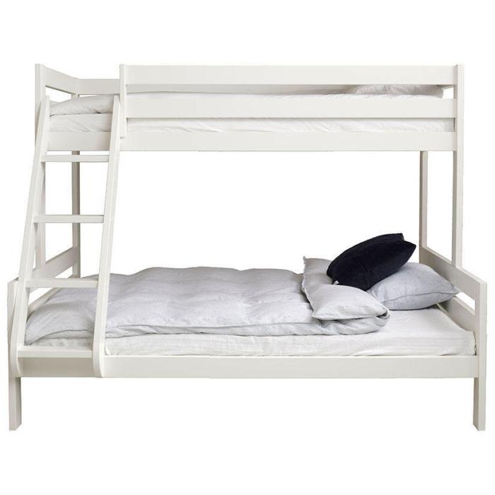 Siri familjesäng 90/140x200 cm är den perfekta lösningen för familjer som vill ha en flexibel och bekväm sovplats. Denna modell erbjuder två bäddar – en övre säng på 90x200 cm och en bredare undersäng på 140x200 cm. Den extra rymliga undersängen ger gott om plats för både barn och vuxna, vilket gör det enkelt att samsas om utrymmet.