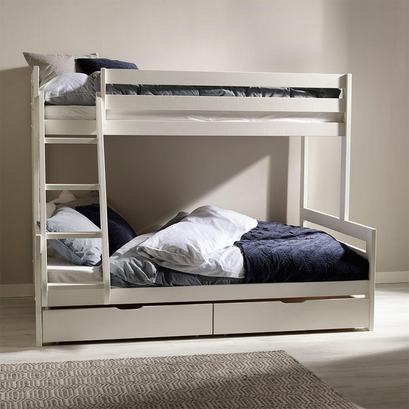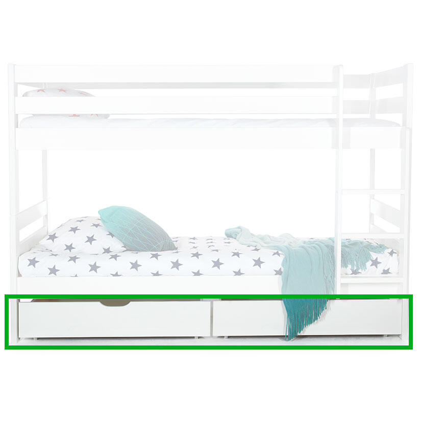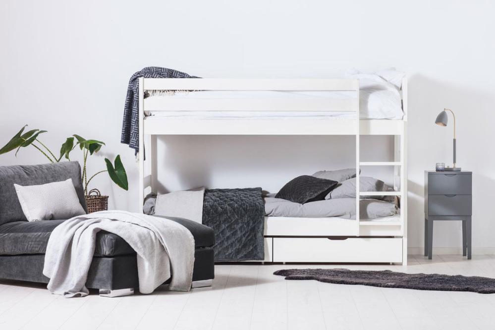 Till Siri våningssäng och familjesängar finns smarta förvaringslådor på hjul som hjälper dig att hålla ordning och reda.