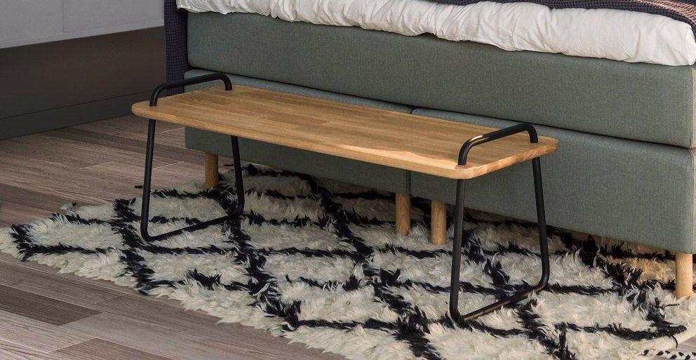 Sängbänken 'Sit on Bench' är tillverkad i massivt trä, stående på golvet. Finns i fyra utföranden: Oljad, svartbetsad och vitlaserad ek eller vitlaserad björk. Metallstativet är i svart pulverlackerat stål.