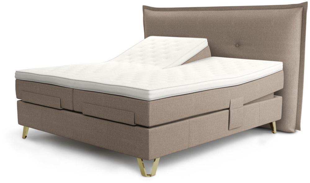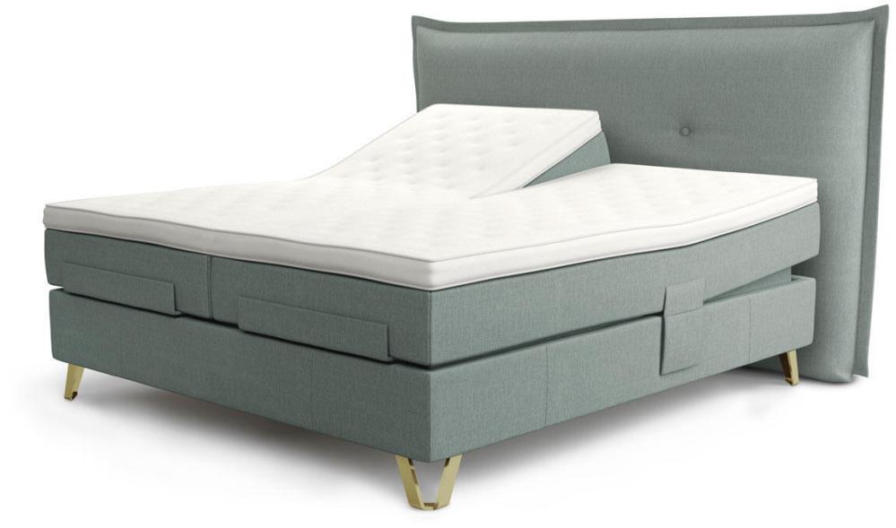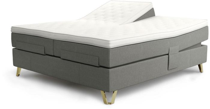 Ställbara sängen Jensen Aqtive II är elegant och ser ut som en kontinentalsäng så länge den inte justeras. Den tekniska lösningen döljs av den textilklädda ramen.