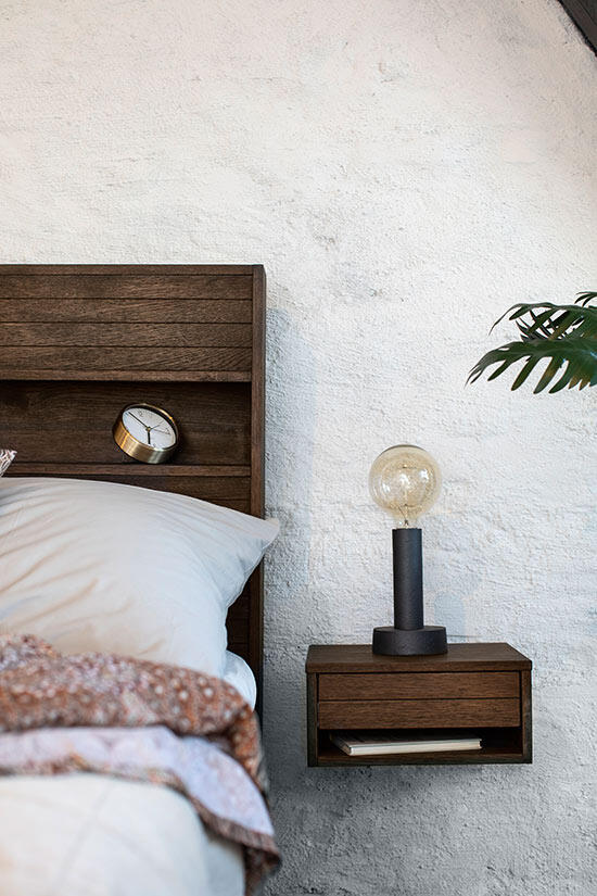 I sovrumsserien Trace från Torkelson finns även ett vägghängt sängbord vilka matchas perfekt med gaveln. Tillsammans ger möblerna ett elegant, praktiskt och enhetligt uttryck till sovrummet. Du hittar sängbordet en bit ner på sidan under Liknande produkter.