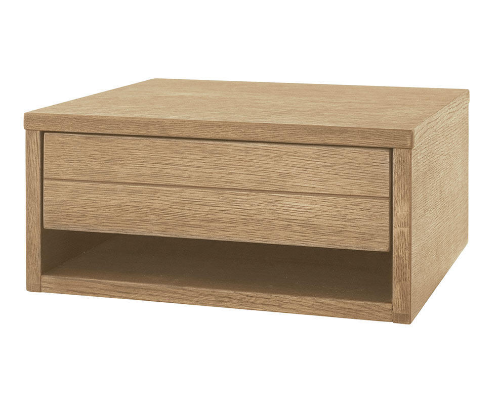 Trace nattduksbord är enkel att placera och att anpassa till din sänghöjd då det är vägghängt. Förvaringshyllan är tillverkad av fanérad ek, valbar i tre ytbehandlingar; oljad, rökoljad och vitoljad ek.