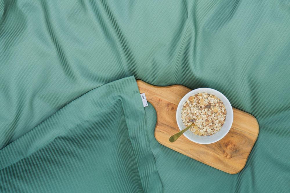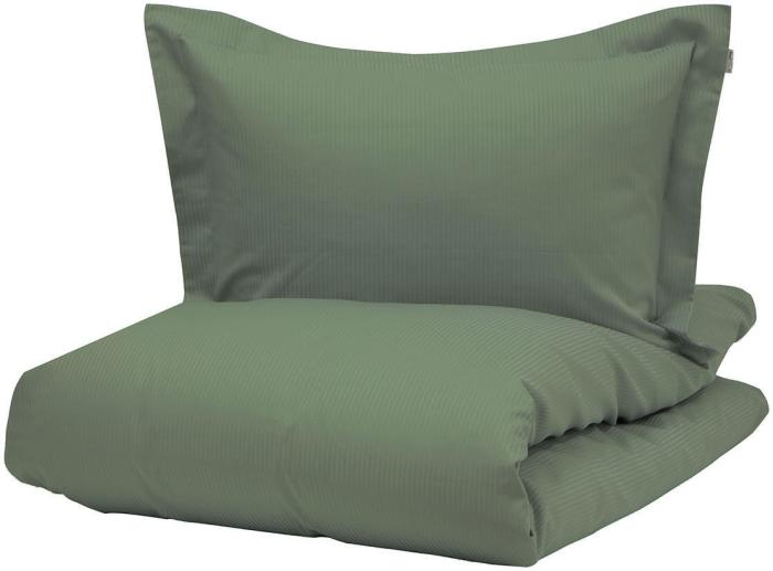 Turistripe i färgen mörkgrön är ett stilrent, mjukt och behagligt bäddset i 100% bomull. Både örngott och påslakan har dekorativa knappar för praktisk stängning.