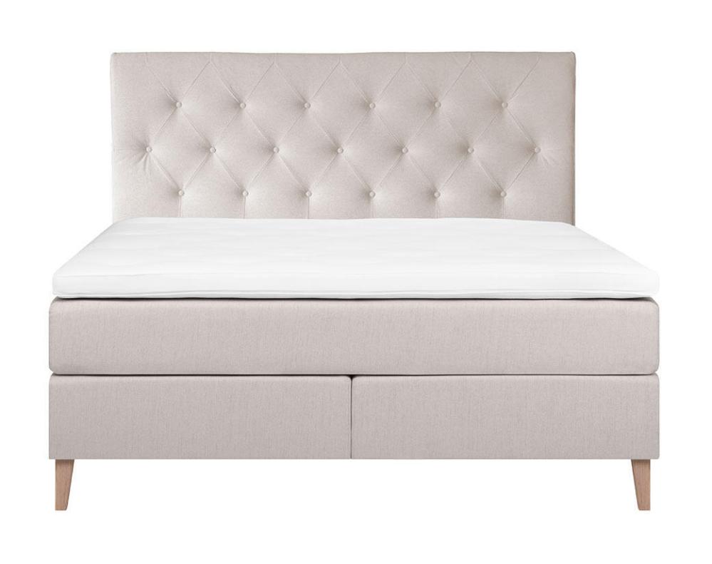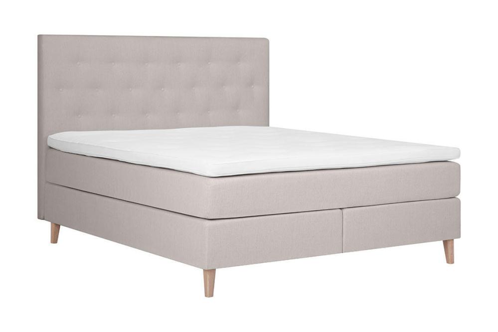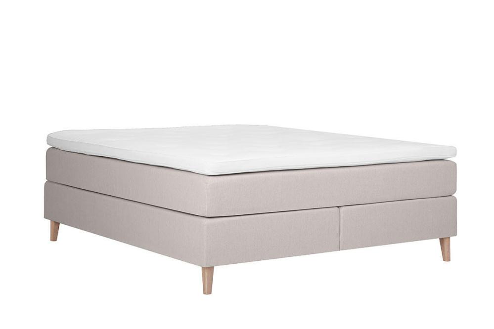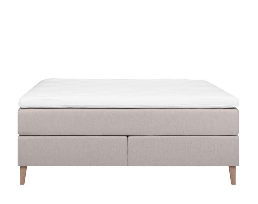 Denna kontinentalsäng levereras med en 8 cm tjock bäddmadrass i polyeter som lägger till ytterligare lager av mjukhet och stöd. Sängen vilar tryggt på massiva ekben, 16 cm höga, som inte bara ger stabilitet utan också en touch av naturlig skönhet. Huvudgavel finns som tillval.