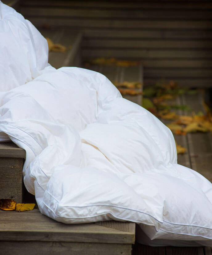 Vi rekommenderar att såväl duntäcken som kuddar vädras och skakas regelbundet för en lång hållbarhet och minimerat behov av tvätt. Självfallet går det att tvätta produkterna vid behov i 60° grader med skonsamt tvättmedel.