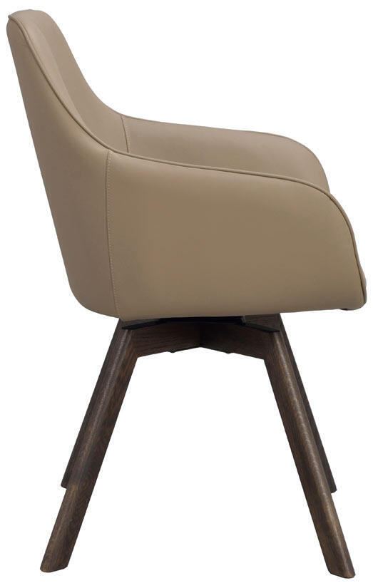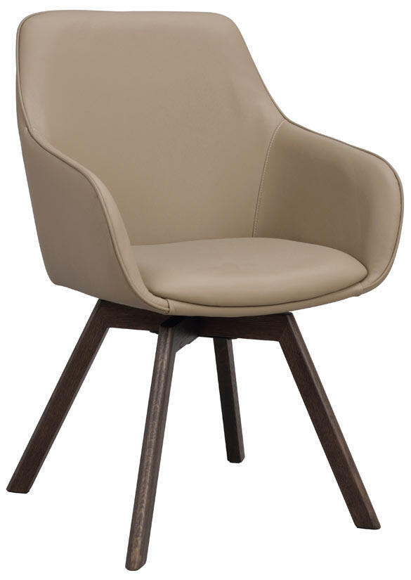 Alison karmstol i beige läder har precis som populära Alison stol ett snurrbart underrede i 360 grader. Den kupade stoppade sitsen och de höga armstöden gör stolen bekväm och ombonad att sitta i. Alison karmstol med träunderrede gör det lätt att matcha karmstolen med andra trämöbler i hemmet. Träet inuti sitsen och det lackade bruna ekunderredet består av 100 % FSC®-certifierat trä. Säljs endast i 2-pack.