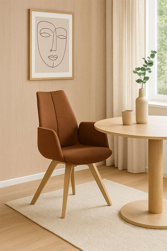 Aroma karmstol är en exklusiv matstol från norska varumärket Brunstad. Stolen är skapad för att ge maximal komfort runt matbordet. Aroma har samma genomtänka ergonomi som Brunstads välkända fåtöljer, varpå stolen erbjuder en sittupplevelse utöver det vanliga.