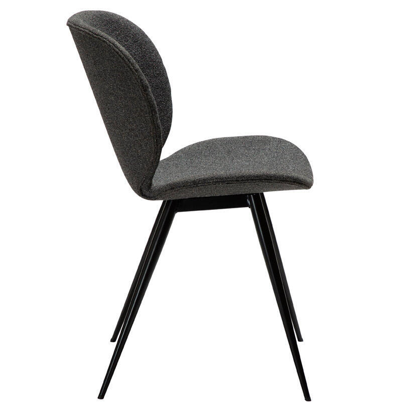 Cloud matstol är skandinaviskt designad av Marianne Bjarløv och har en enkel men ändå effektfull form med organiska, rundade hörn på sätet och eleganta koniska metallben i svart som ger en lätthet i designen. Det är en stol som ser bra ut från alla vinklar utan att dominera utrymmet.