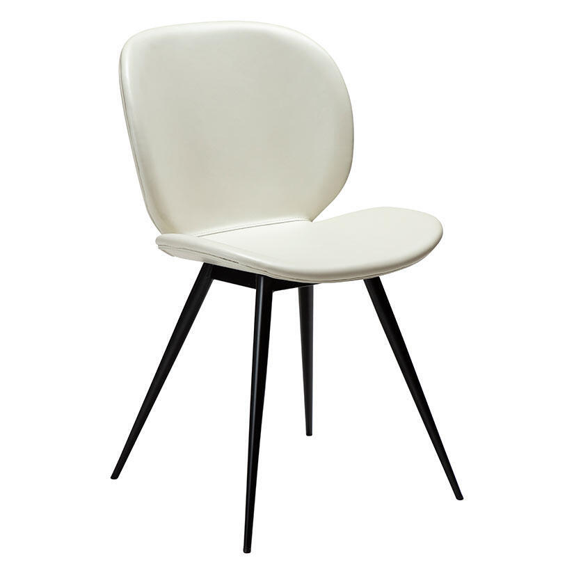 Cloud matstol är skandinaviskt designad av Marianne Bjarløv och har en enkel men ändå effektfull form med organiska, rundade hörn på sätet och eleganta koniska metallben i svart som ger en lätthet i designen. Det är en stol som ser bra ut från alla vinklar utan att dominera utrymmet.