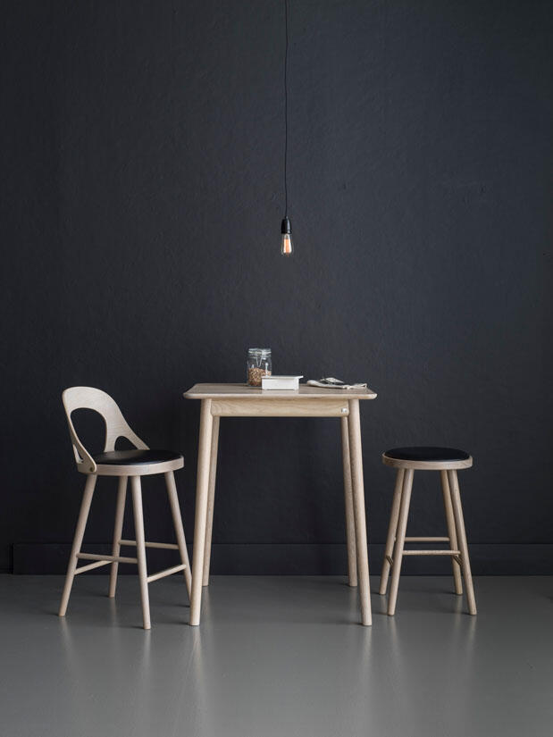 I Hans K's sökande efter perfekt sittkomfort skapades Colibri - en nätt barstol inspirerad av femtio- och sextiotalets möbeldesign. Stolen är tillverkad av ek som är ett flexibelt tunt och massivt rejält träslag, trä för både öga och hand. Formen följer funktionen med ergonomi och omtanke i varje detalj. Den graciösa rundningen för ryggen gör dig praktiskt taget ett med stolen. Komplettera med ett stilrent Colibri matbord, med massiva ben och en rundad, slittålig bordsskiva i linoleum från Forbo.