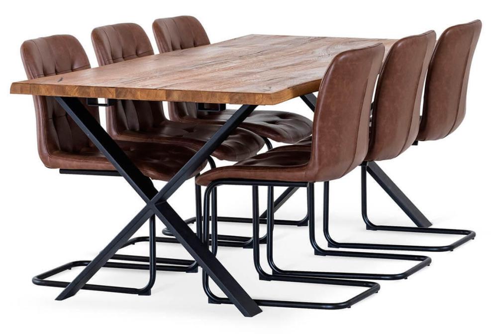 Frank från Torkelson är en bekväm stol med det rätta gunget. Stolen får en skön sittkomfort från den formgjutna sitsen och det behagligt sviktande metallunderredet. Frank är klädd i ett slitstarkt konstläder med vintagekänsla, pickeringen i sits och rygg ger stolen sin unika karaktär. Tillgänglig i tre läderfärger, alla med mattlackat underrede.