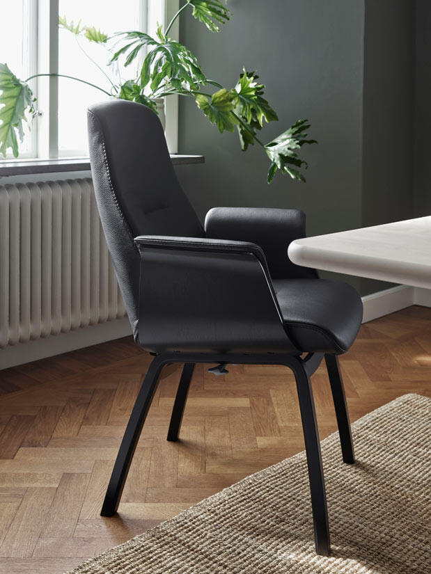 Efter generationer av att tillverka fåtöljer är nu Conform redo att utöka sitt utbud en aning. Men de sträcker sig bara ut några meter eller så, från vardagsrummet till matsalen. Conforms fåtöljer är välkända som den mest bekväma platsen i alla hem. Det är den känslan vi nu bär in till middagsbordet. Inbyggd i ryggen på Freetime är deras unika Syncro Backup-teknik, som gör att stolen smidigt följer din sittkurva. Du kommer alltid att få en ergonomiskt korrekt position, oavsett om du sitter upprätt eller bakåtlutad.
