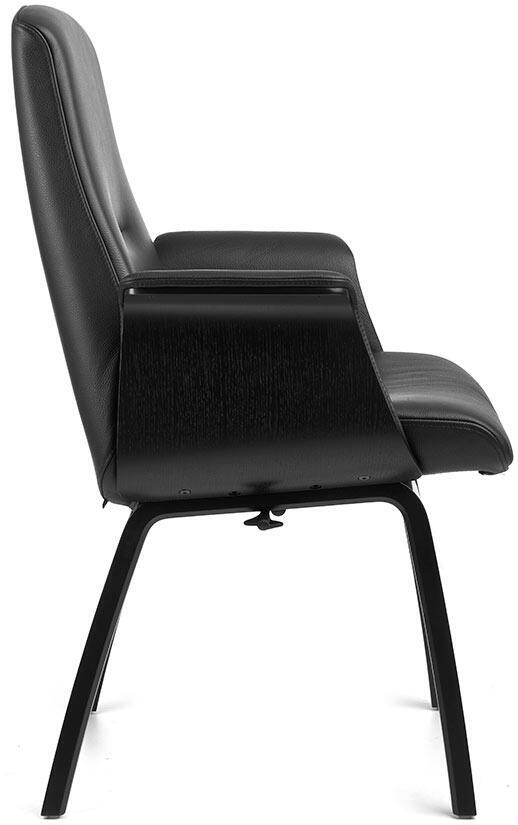 Den här modellen har träskal/armstöd med träunderrede (4 ben). Se en bit ner på sidan under Liknande produkter för modell utan armstöd och med klassiskt armstöd samt med snurrfot i metall.