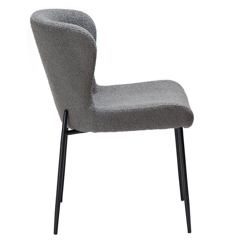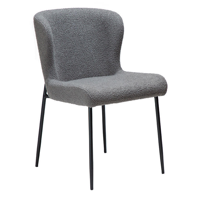 Stolen passar till många matbord och som solitär till skrivbord, hallen eller sovrummet. Här är Glam klädd i ett slitstarkt och härligt bouclétyg av återvunnen plast (rPES) i flera vackra färger.