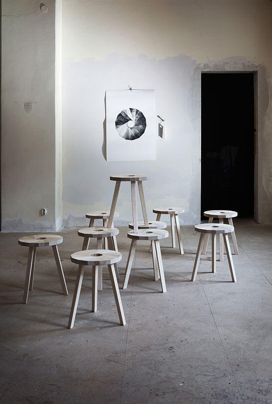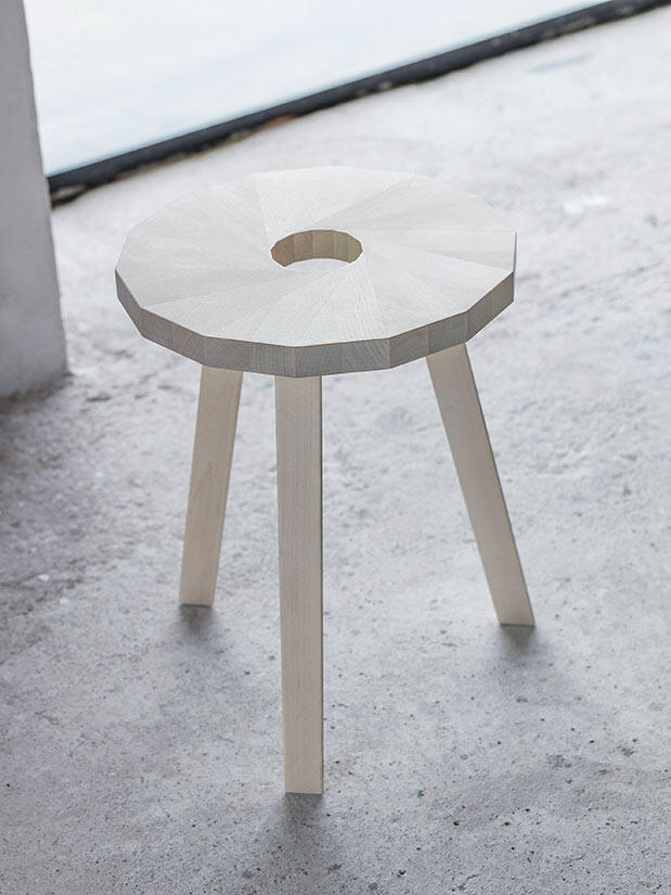 Lilla Snåland är en trebent pall där 14 spillbitar från Lilla Åland limmas ihop till en sits vars form är inspirerad av Fibonaccikoden*.