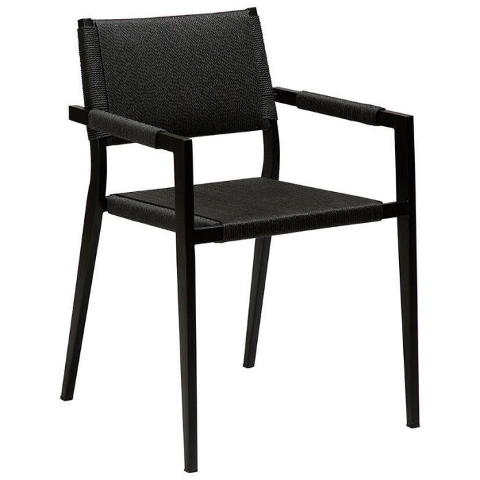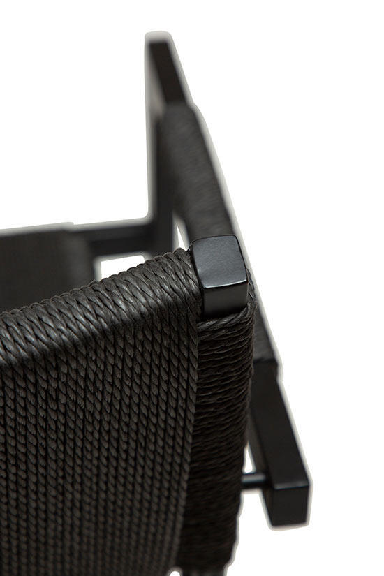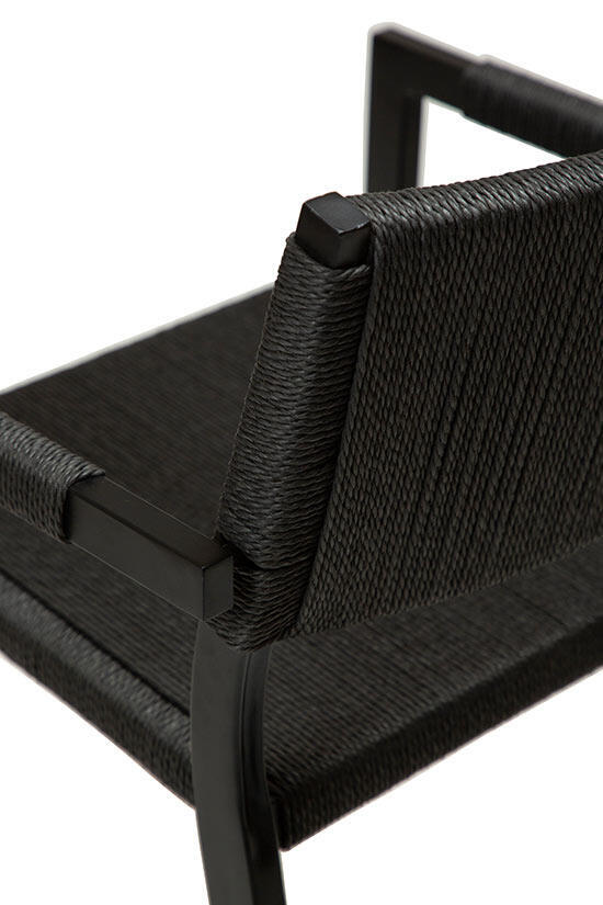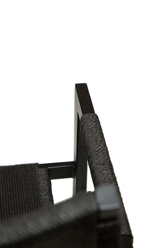 Loop är enkel men ändå effektfull karmstol som är en nytolkning av en klassisk stol. Stolen med armstöd är formgiven av den danska designerduon Says Who. Loop har en svart metallram som dekorerats med handvävd 3-lagers papperslina i en rak, väldigt linjär väv som lyfter stolen till nästa nivå och kan även ta din inredning till nästa steg. Svart papperslina på sits och rygg.