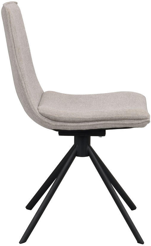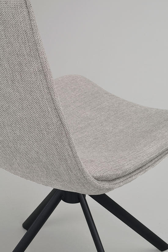Stoppad stol med tygklädsel på plywoodstomme, ben i pulverlackad metall i sandstruktur. Fot i plast