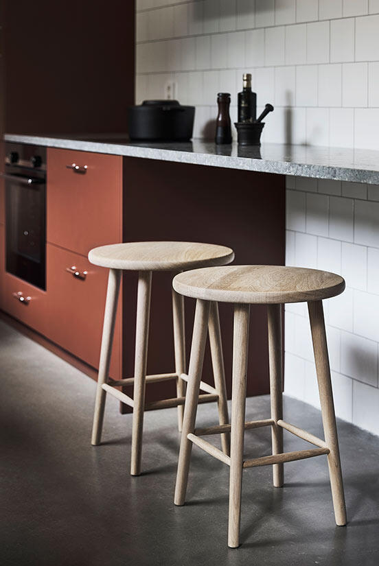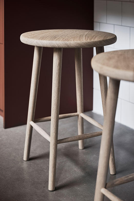 Miss Button tillverkas i massiv ek och finns i naturell olja och i vitolja.