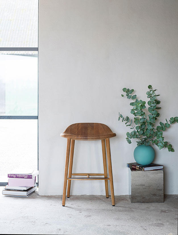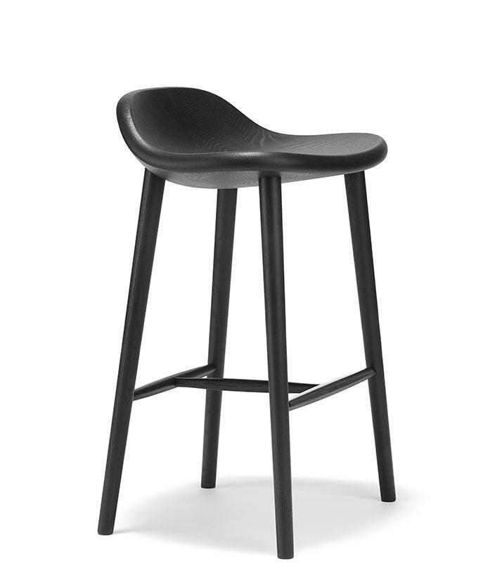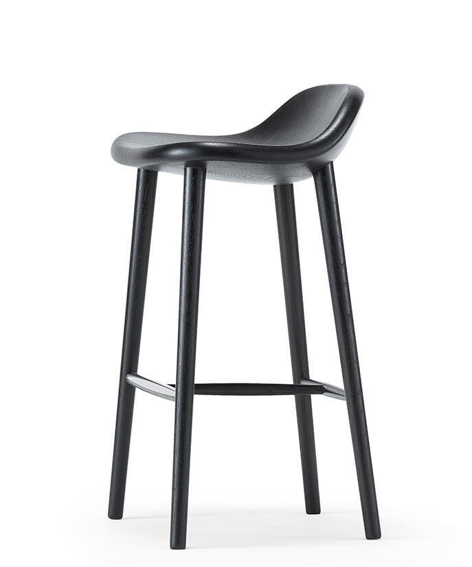 Den här artikeln är modellen på 63 cm, scrolla ned en bit på sidan till Liknande produkter för att se den högre. Miss Holly finns även som stol helt i massiv trä samt i ett helklätt utförande i valfritt tyg med björk eller ek ben.