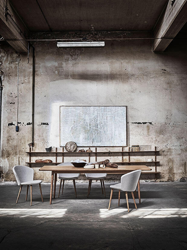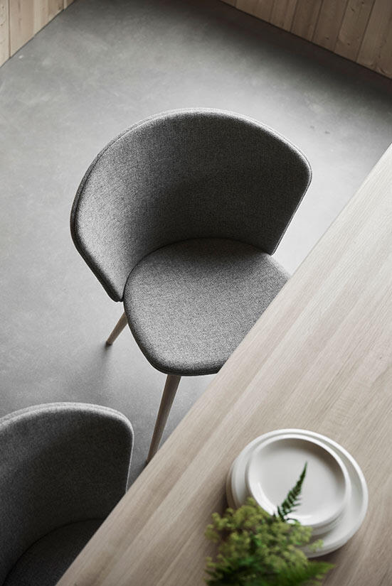 I Miss Holly klädd stol har Jonas Lindvall skapat en varm, omslutande stol där mjuka former möter det massiva träet i stolens ben. En stol som passar lika bra kring matbordet som vid konferensbordet eller som solitär. Stolen har fast klädsel och kläs i några utvalda klädslar.