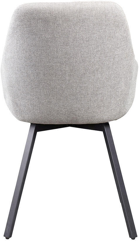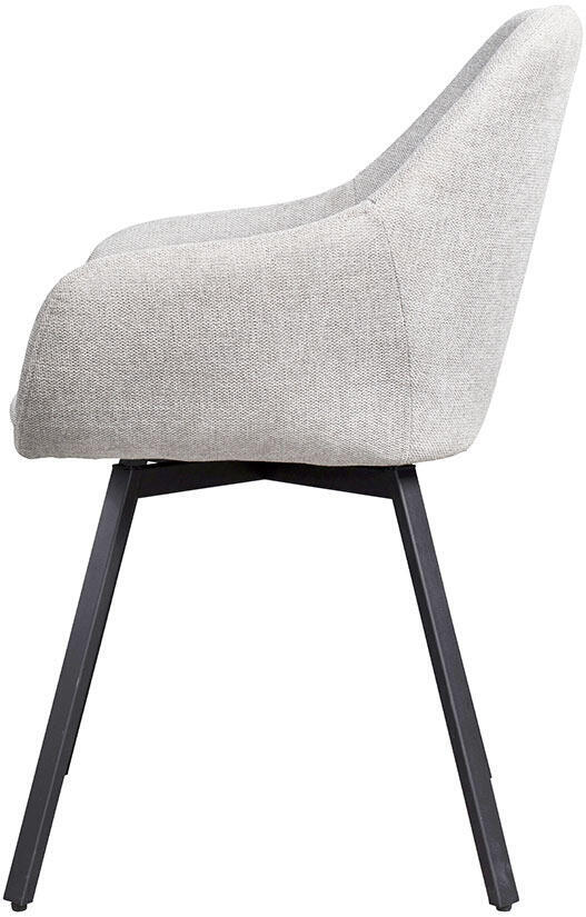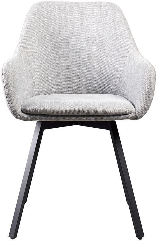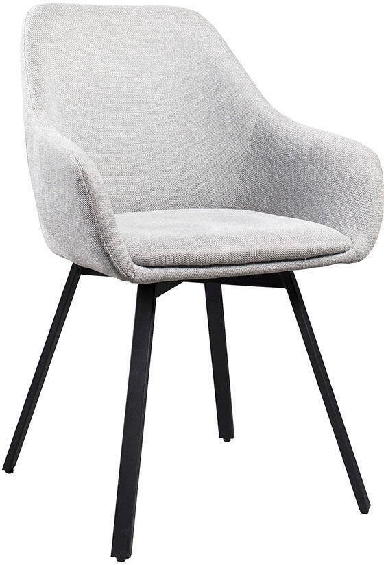 Navo är klädd i vackert och slitstarkt tyg i ljusbrunt, ljusgrått eller mörkgrått med ben i svartlackad metall. Benen finns som här med snurrfunkton eller fast med 4-ben som hittas här.