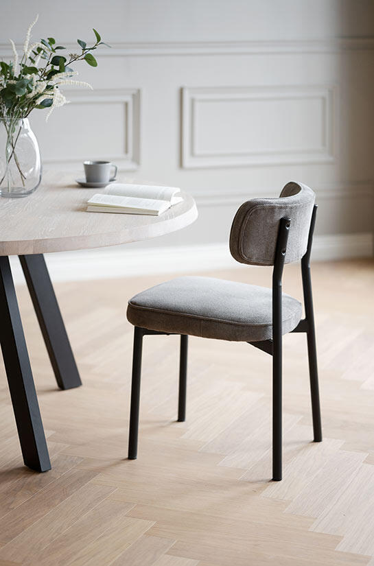 Stolen Paisley är FSC-certifierad och har ett tåligt gråbrunt tyg som är tillverkat av återvunna PET-flaskor (RPET). Det innebär att PET-flaskorna inte hamnat i havet eller förorenat stränder utan i stället bearbetats till ett högkvalitativt mjukt tyg – perfekt för möbler. Rundningen i ryggstödet skapar hög sittkomfort och en avslappnad känsla. De trendiga runda benen i svartlackad metall ger stabilitet och ett unikt uttryck som passar till de flesta matbord. Att välja Paisley stol innebär ett bättre miljöval. Säljs endast i 2-pack.