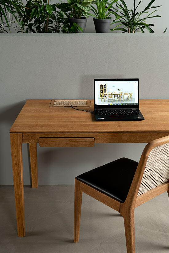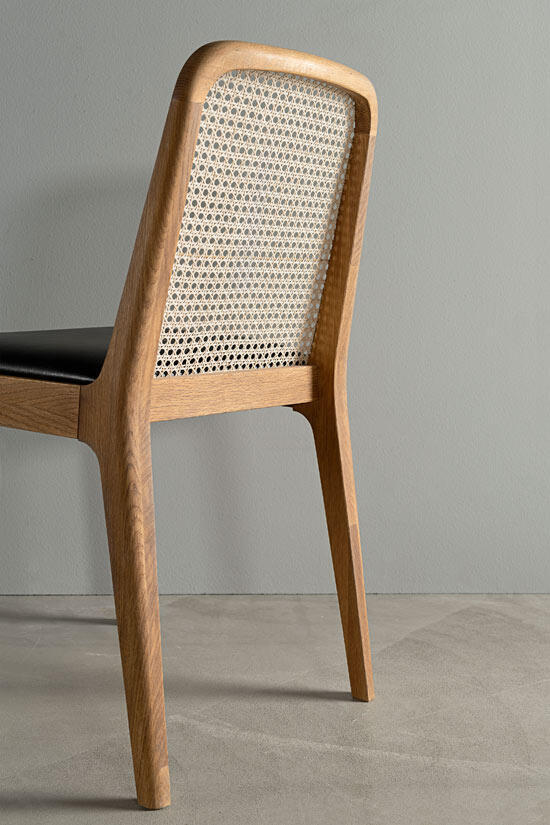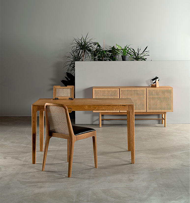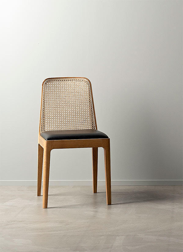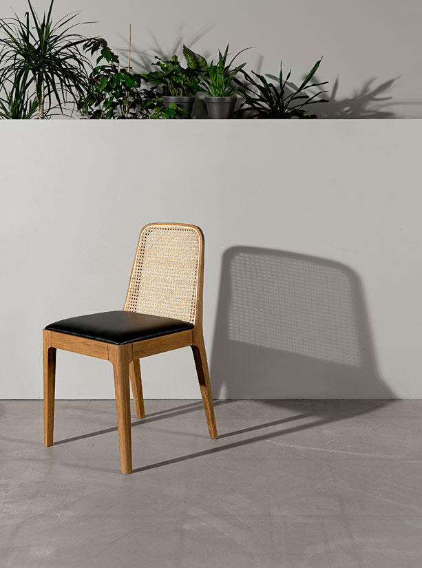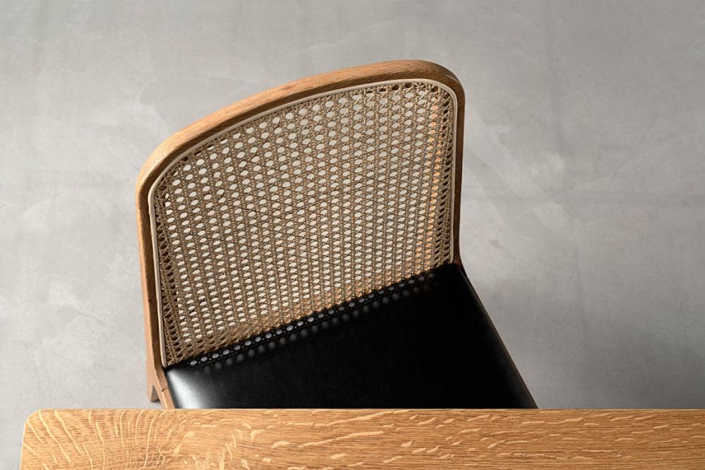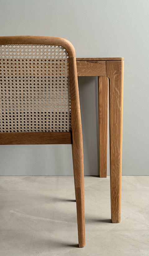 Möbelserien Racquet från svenska varumärket Hans K prickar in rotting-trenden med stor precision. Formgivningen är djupt rotad i den skandinaviska designtraditionen och kryddad med ett modernistiskt formspråk som lämnar eko från 20-talets designikoner. Rottingens transparens står i stark kontrast mot den kraftiga ramen i massiv ek och sköna sits av svart läder.