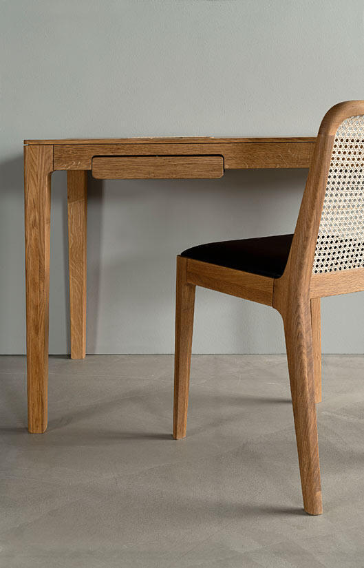 Köksstolen Racquet är framtagen av den tyska formgivaren Jannis Ellenberger, en designer med förkärlek till massiva träslag och genomtänk funktionalitet. Likt möbelserien Racquet har Jannis tillsammans med Hans K även tagit fram loungefåtöljen Bremen. Du hittar alla delar ur möbelserierna Racquet och Bremen en bit ner på sidan under Liknande produkter.