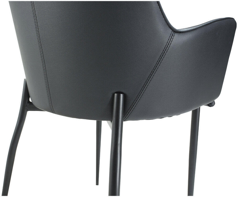 Här är Rombo klädd i ett svart högkvalitativt konstläder (PU) med svarta pulverlackade metallben. En bit ner på sidan under Liknande produkter kan du även hitta Rombo i vintage konstläder och i snygga slitstarka tyger.
